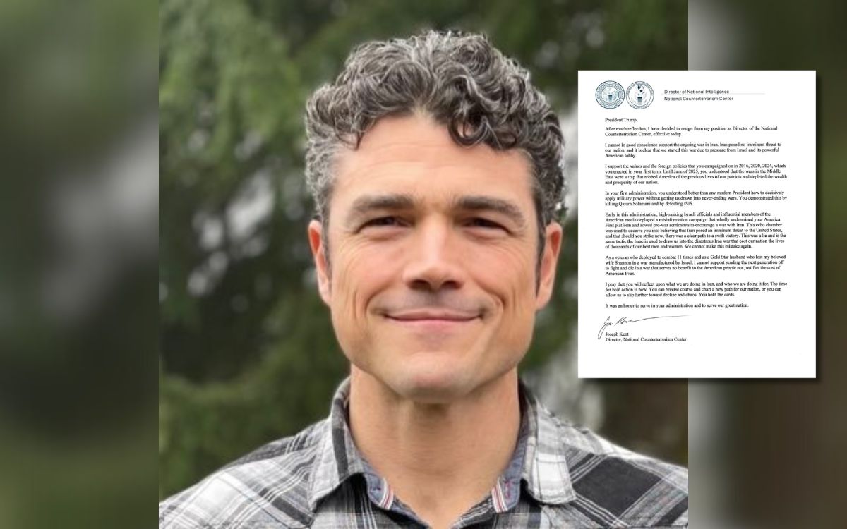 Ciudad de Mexico, 17 de marzo de 2026.- El director del Centro Nacional de Contraterrorismo (NCTC) de Estados Unidos, Joe Kent, presentó su renuncia en protesta por la guerra contra Irán, acusando que el conflicto fue impulsado por presión israelí y no por una amenaza real. En una carta pública dirigida al presidente Donald Trump, Kent, un veterano de las fuerzas especiales y exagente de la CIA, afirmó que no podía en conciencia apoyar una guerra iniciada sin justificación, lo que provocó una respuesta del mandatario quien lo calificó de “débil en seguridad”. Esta es la primera dimisión de alto nivel en el gobierno de Trump por este conflicto, evidenciando divisiones internas.