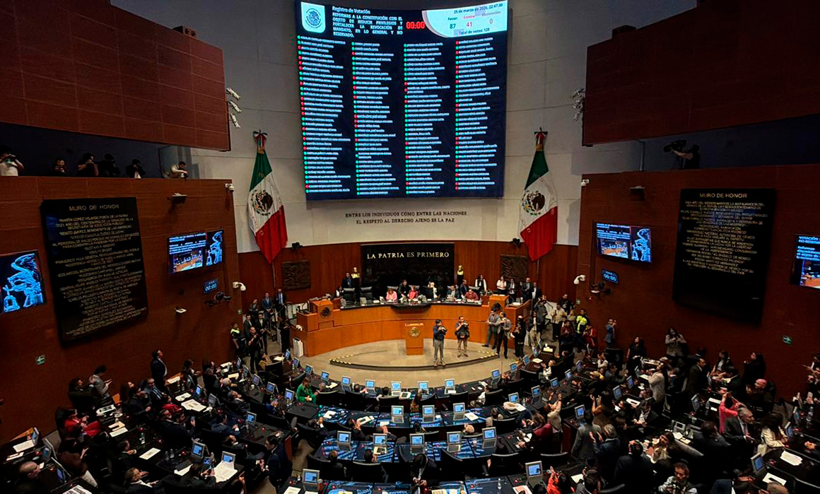 Ciudad De México, 27 de marzo de 2026.- El Pleno del Senado de la República aprobó en lo general el proyecto de reforma electoral conocido como ‘Plan B’, impulsado por la presidenta Claudia Sheinbaum Pardo, tras una sesión marcada por la división entre los grupos parlamentarios. Con 128 senadores presentes, la iniciativa obtuvo 87 votos a favor de las bancadas de Morena, Partido Verde Ecologista de México (PVEM) y Partido del Trabajo (PT), mientras que 41 legisladores de PAN, PRI y Movimiento Ciudadano votaron en contra.